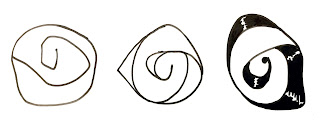 Also shown in the tile above is a version of Printemps some have called "weighted". I start by drawing a very irregular spiral (easier if I hold the pen lightly), then add sections to make a neater spiral, and fill in the thicker parts. I like to leave highlights; it could also be solid black. Here's a quick how-to: